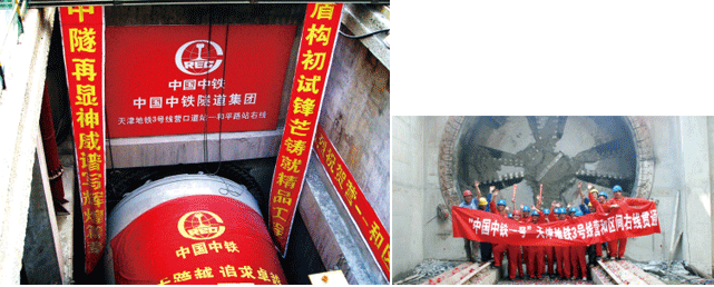 天津地铁项目 粉土淤泥地层。“中铁1号”是我国自主研发制造的第一台具有自主知识产权的复合式土压平衡盾构样机,该机2008年4月25日在河南新乡下线,用于天津地铁3号线10标段营口道站-和平站区间隧道施工,先后下穿著名建筑瓷房子、张学良故居等多座老式标志性建筑物,依托优良的渣土改良系统,沉降量控制在3mm内。本设备最高日进度21.6米,最高月进度560米。