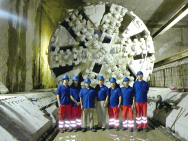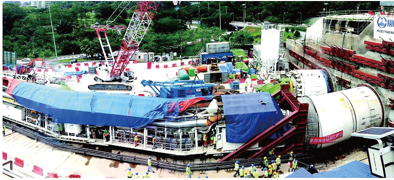 马来西亚地铁项目 砂质泥岩、片状泥岩等。中铁50号、51号盾构,开挖直径6670mm,主驱动功率1120KW。用于马来西亚巴生河谷捷运线,区间地层以砂质泥岩、片状泥岩、强风化泥岩、碎砾石、肯尼山残积层为主,复杂多变,地下水丰富,下穿建(构)筑物较多。其中中铁51号创造了最高月推进347.2米的马来西亚施工记录,隧道的最终沉降、隆起均控制在2mm以内。